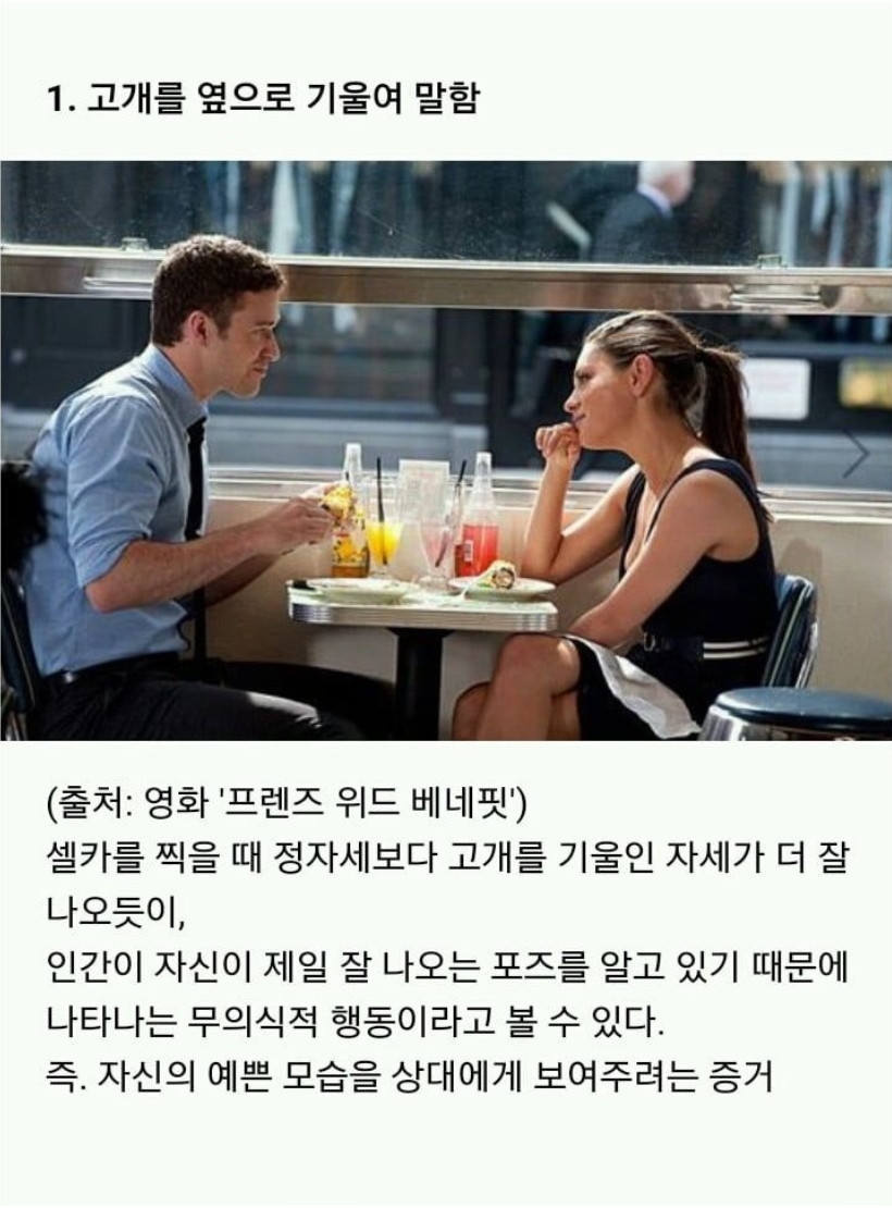 여자가 남자에게 진짜 호감있을 때 하는 무의식 행동 8가지
