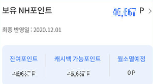 아래와 같이 본인이 보유한 NH 포인트를 확인하실수 있습니다.